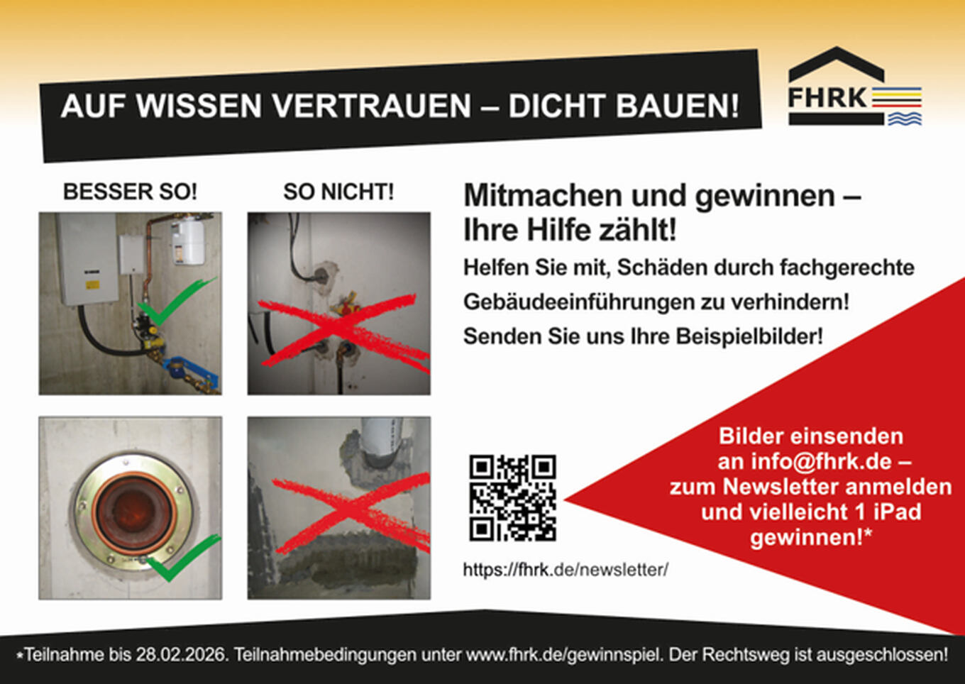 Helfen Sie mit, Schäden durch fachgerechte Gebäudeeinführungen zu verhindern! Senden Sie uns Ihre Beispielbilder!